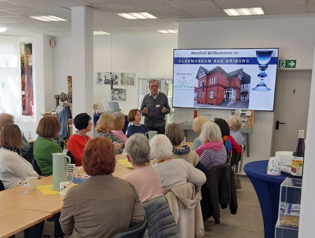 In einem lebendigen Präsentationsvortrag nahm Friedhelm Macke die LandFrauen mit auf eine Zeitreise: von den Ursprüngen der Glasherstellung im Nahen Osten vor 4000 Jahren bis hin zur Bedeutung des Glases für die Stadt Bad Driburg. Er verdeutlichte, wie prägend die Glasproduktion für die Stadtgeschichte war, und dass Bad Driburg bis heute zu den wichtigsten Glashandelsstandorten Europas zählt.