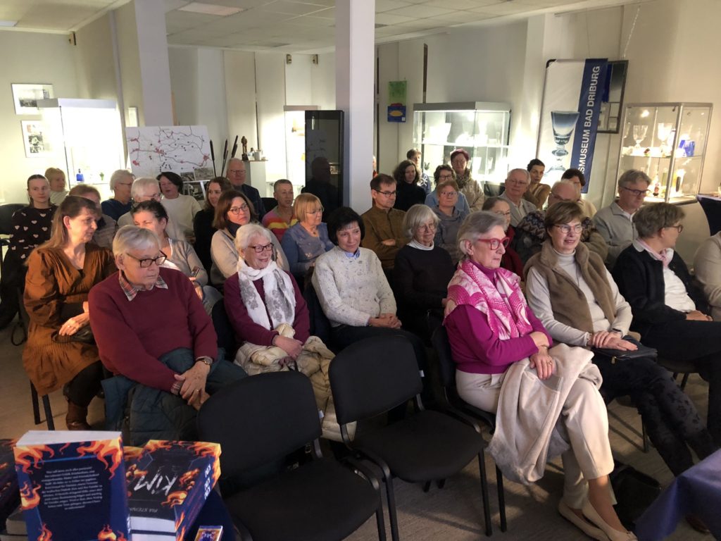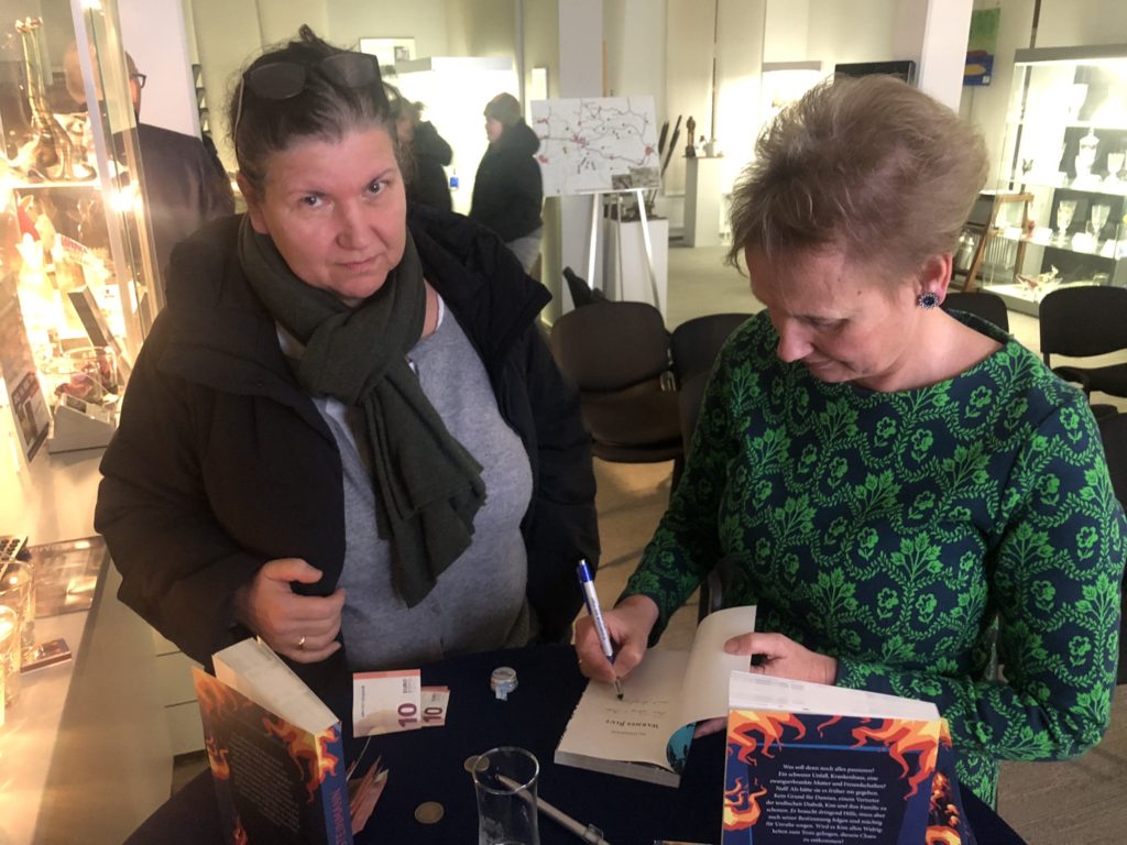 Die anschließende Lesung war emotional, intensiv und fesselnd. Es war „museumsmäuschen-still“, und das Publikum hing an jedem ihrer Worte. Als die Lesung nach etwa einer Stunde endete, war schnell klar: Viele wollten unbedingt erfahren, wie die Geschichte weitergeht. Zahlreiche Gäste kauften direkt im Anschluss ein Exemplar, das die Autorin gern mit einer persönlichen Widmung versah.