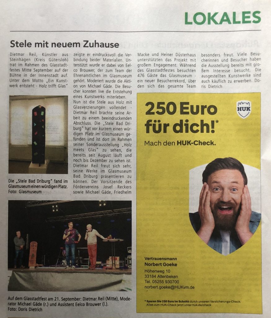 Das Glasmuseum Bad Driburg plant für September 2019 eine Ausstellung mit lokalen Glaskünstlerinnen und Glaskünstlern. Wer kreativ mit Glas in jedweder Form arbeitet und seine Werke einem überregionalen kunstinteressierten Publikum präsentieren möchte, kann sich beim Glasmuseum um eine Teilnahme bewerben. Bewerbungen sind noch bis zum 28. Februar 2019 möglich.