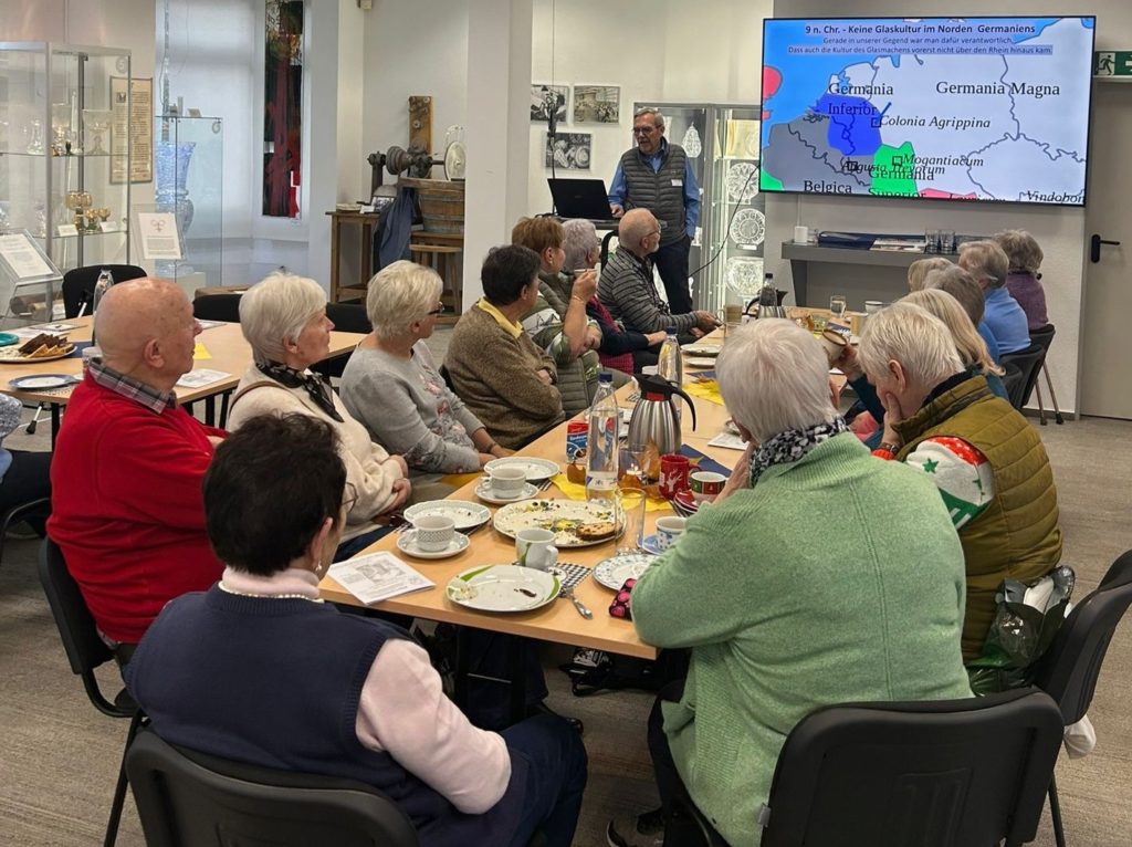 Die Seniorinnen und Senioren der Südstadtkirche „Zum verklärten Christus“ treffen sich regelmäßig alle zwei Wochen zum Austausch und geselligen Beisammensein in den Gemeinderäumen. Organisiert werden die Treffen von Anni Köhler, die als „guter Geist“ der Gruppe gilt. Durch ihre Kontakte zum Vorstand des Fördervereins Glasmuseum Bad Driburg e.V. entstand die Idee, ein Treffen einmal im Glasmuseum abzuhalten – eine Anregung, die sofort auf große Zustimmung stieß.