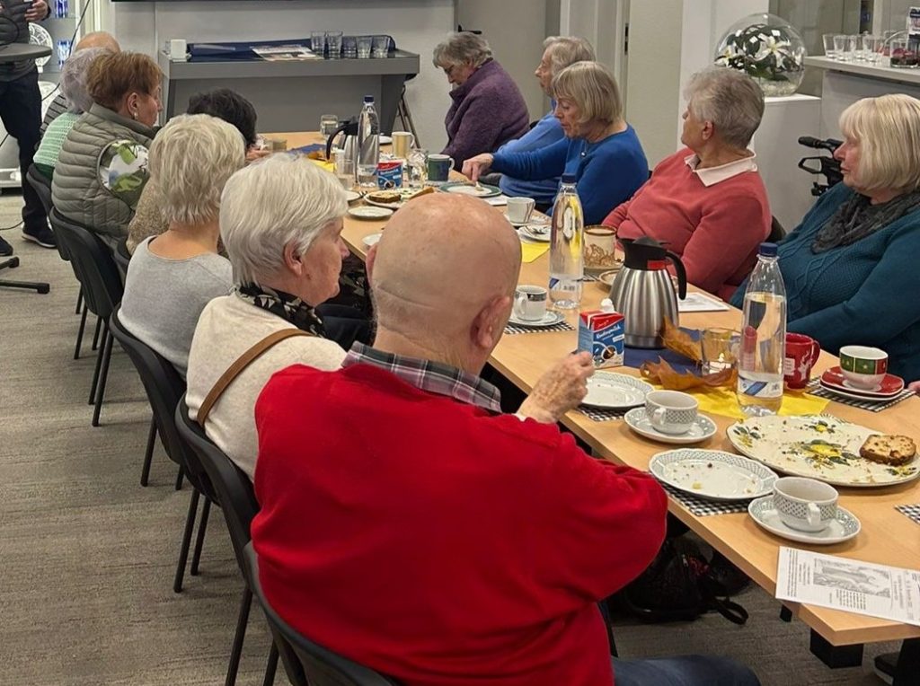 Die Seniorinnen und Senioren brachten Geschirr und Besteck mit, machten es sich in gemütlicher Runde bequem und genossen die Kaffeetafel.